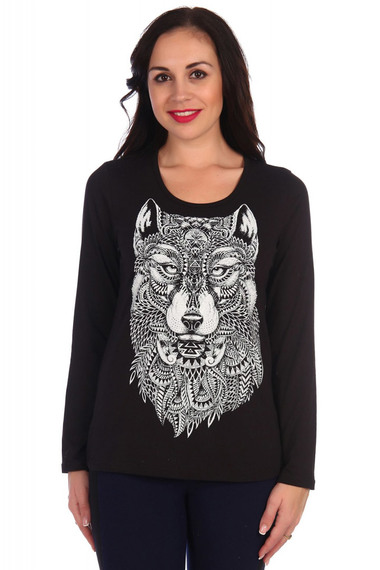 Фото товара 17560, черный лонгслив с волком